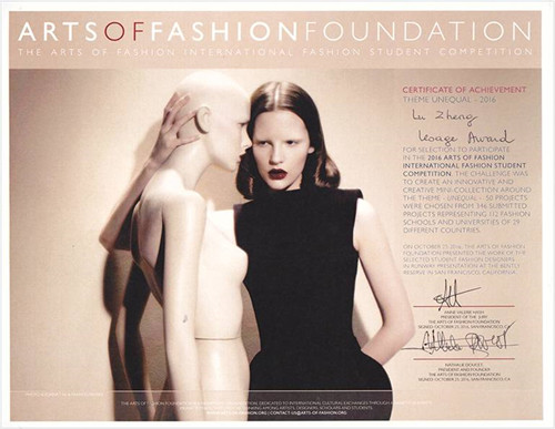 日前在美国旧金山刚刚结束的2016年ARTS OF FASHION FOUNDATION—国际时装设计大赛(ARTS OF FASHION FOUDATION COMPETITION –简称“AOF”),大赛汇集了英国伦敦时装学院、美国帕森斯设计学院等40多个国家世界知名服装艺术设计院校,54名优秀学生角逐8个奖项。通过9位国际评委对于设计师作品集展示和服装动态表演。最后东华大学服装艺术设计学院,东华新锐设计师卢政设计作品《犯罪现场》夺得了该大赛的Maison Lesage Award、张华皓设计作品《废土》Manish Arora Award 。也是东华大学第一次参加该大赛获得殊荣,体现了东华大学周洪雷创意服装设计教学团队理念与特色。