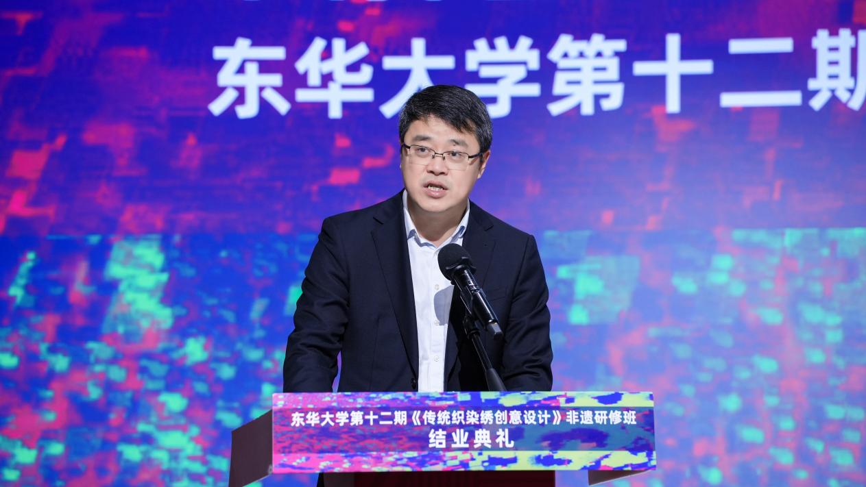 11月15日,东华大学第十二期非遗研修班结业。党委书记刘承功、上海市文旅局非遗处处长陈平以及学校相关职能部门及服装与艺术设计学院负责人出席,上海高校服饰文化育人联盟成员高校师生代表和本期研培班全体学员、结对中外学生代表参加。活动由非遗教研中心主任张顺爱主持。